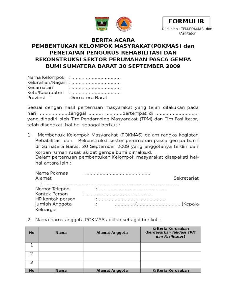 Dalam melaksanakan tugasnya pokmas pemugaran rumah tidak layak huni mempunyai tugas membantu sebagai berikut : Jika iya kebetulan kami punya contoh format nya dalam bentuk doc word dan pdf yang dapat anda download gratis free. Metode ptsl ini merupakan inovasi pemerintah melalui kementerian atr/bpn untuk memenuhi kebutuhan dasar masyarakat: Bahwa dalam rangka merealisasikan program pembangunan ruang. Contoh sk penetapan status darurat desa wabah bencana contoh sk relawan covid 19 sk relawan desa lawan corona virus disease 2019 format surat tugas pendata blt dana desa. M e m u t u s k a n. Peraturan walikota nomor 9 tahun 2010 tentang pelimpahan sebagian wewenang pemerintahan dari walikota singkawang kepada camat dan lurah di wilayah kota singkawang (berita daerah kota singkawang tahun 2010 nomor 9). Contoh lpj pokmas cikaret 2012 Biaya penggandaan dokumen pendukung, 2. 05 bandung kecamatan diwek, kabupaten jombang telp. Semua orang bisa masuk ke aplikasi survey tanahku karena aplikasi ini memiliki akun tunggal dengan sentuh tanahku. Form checklist berkas kenaikan pangkat jenis kp : Sk yayasan format 638 x 826 contoh sk gty tk yayasan operator sekolah taman krocok format 410 x 616 pixel download contoh sk guru tetap yayasan format 638 x 1051 pixel download contoh sk pengangkatan yayasan untuk gty guru tetap format 1105 x 580 pixel download.