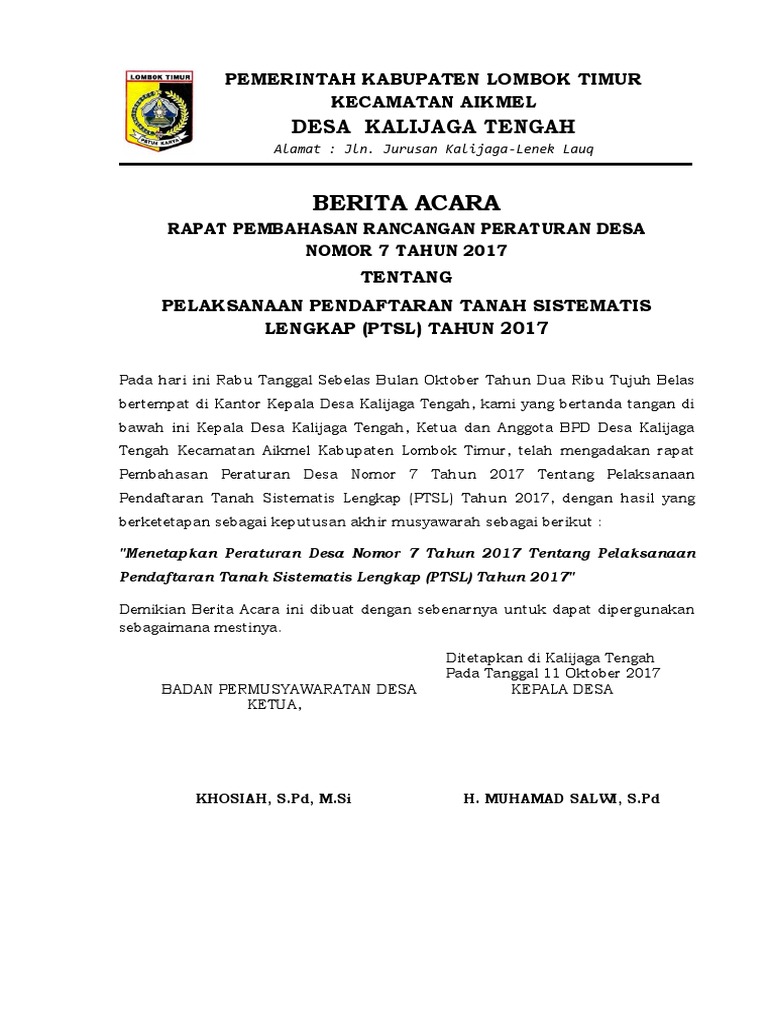 Sk kepala desa dikeluarkan oleh kepala desa untuk menindaklanjuti/menjabarkan peraturan desa, peraturan kepala desa atau suatu keadaan yang mengharuskan perlu adanya keputusan dari kepala desa. Semua orang bisa masuk ke aplikasi survey tanahku karena aplikasi ini memiliki akun tunggal dengan sentuh tanahku. Penunjukan pelaksana teknis pengelolaan keuangan desa ( ptpkd ) desa kediren: Seluruh kanwil pajak akan memiliki 1 (satu) kegiatan tersendiri dibawah dirjen pajak. Sk yayasan format 638 x 826 contoh sk gty tk yayasan operator sekolah taman krocok format 410 x 616 pixel download contoh sk guru tetap yayasan format 638 x 1051 pixel download contoh sk pengangkatan yayasan untuk gty guru tetap format 1105 x 580 pixel download. Keputusan penanggung jawab klinik sakinah jl. Doc contoh surat permohonan sk susunan pengurus download doc contoh surat permohonan sk susunan pengurus download format surat lain: Contoh sk tim ptsl d4pqz30mw9np. Setelah pemaparan tentang program ptsl (pendaftaran tanah sistematis lengkap) ,kemudian dilanjutkan dengan pembentukan pokmas melalui musyawah bersama dengan menghasilkan susunan pokmas program ptsl 2020 desa ringinagung sebagai berikut: Kanwil agama, kantor kejati, dll) akan memiliki 1 kegiatan untuk seluruh unit vertikalnya (dibatasi hanya sampai pada organisasi di tingkat provinsi) dan Biaya penggandaan dokumen pendukung, 2. Biaya persiapan dibebankan pada masyarakat pemohon ptsl, ungkapnya. Contoh sk pengendalian doc on2ggpgzmy40.